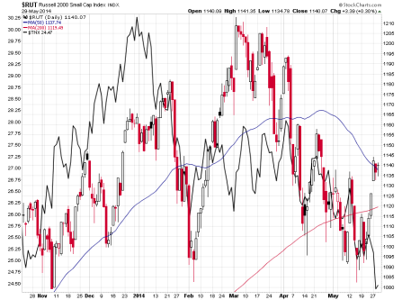 The Russell is essentially in a range of fourth quarter 2013 levels while about six of thirty Dow stocks hit new highs and propel that index to new highs. This isn’t good news if this continues. 1) That ten year rates are falling substantially as GDP turns negative. And, 2) that small caps are following interest rates downward. Someone thinks there is possible trouble ahead. Duh! Over the last week someone or a group of someones is trying to rally the Russell and keep it from making a lower high and lower low, which would possibly point to a major change in trend. So, can they manipulate the index higher with Treasury rates headed the opposite direction? I guess we are going to find out. Bubbles can always get bigger as the Federal Reserve and Wall Street has taught Americans time and again since 1913.